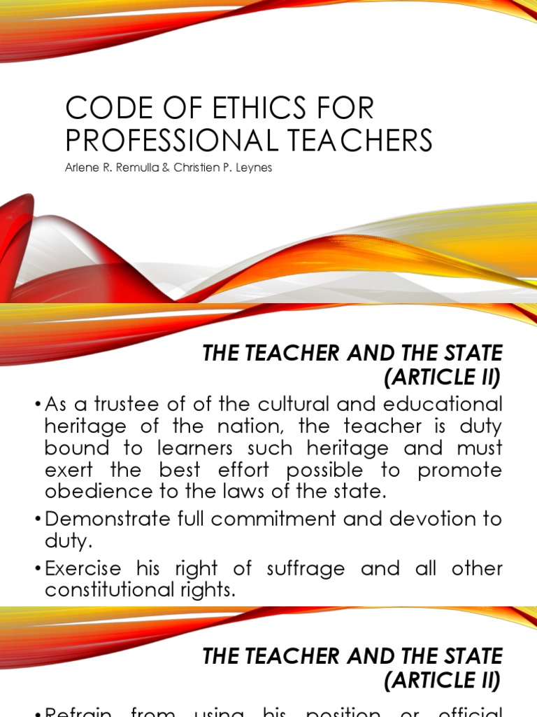 The Code Of Ethics For Professional Teachers The Preamble And Article 1 Ruel Positive